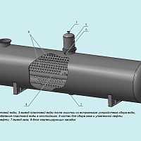 • патрубки: входной и выходной для воды, расположенные на противоположных торцах;